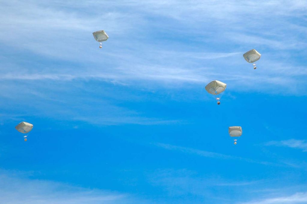 وبدأت الطائرات العسكرية الأجنبية بإسقاط منصات المساعدات الإنسانية هناك. وقد قامت الطائرات الأردنية، بدعم من المملكة المتحدة وفرنسا وهولندا، بتنظيم معظم عمليات الإنزال حتى الآن. وفعلت عدة طائرات مصرية الشيء نفسه يوم الخميس، بالإضافة إلى طائرات من الإمارات العربية المتحدة.