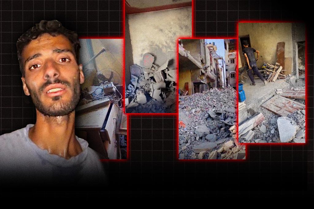“أنا ناجٍ فلسطيني” أحمد عسكر لم يبلغ الثلاثين من عمره، لكن ملامحه ترسم عند عودته إلى مدينة غزة. على الفيديوهات التي أرسلها إليه عالميصور نفسه، ثم يوجه هاتفه الخلوي نحو بقايا ما كان منزله ذات يوم، وهي شقة حديثة في مدينة غزة. واليوم لا تزال هناك أطلال رمادية وجدران دمرتها سنتين من القصف الإسرائيلي.